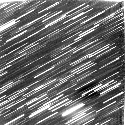 The images have been track and stacked together, compensating for the motion of 15 arc-seconds per