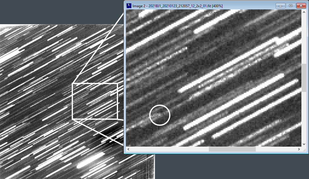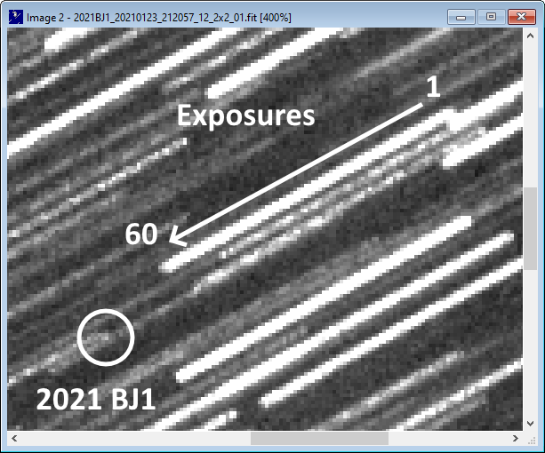 BJ1 on 23-Jan-2021, at the time it was expected to be magnitude +19.8.