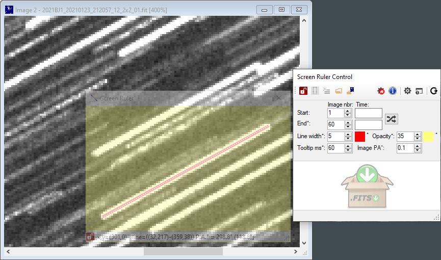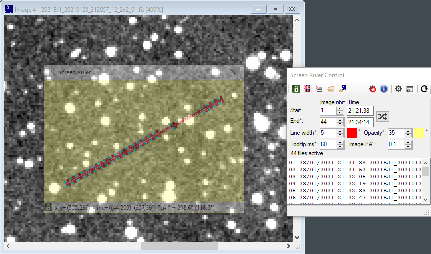 3. 44 images stacked after 16 images rejected using Screen Ruler |