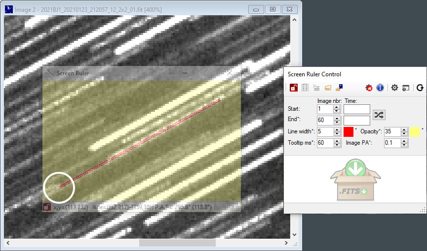 blinked with the zero motion image. Astrometrica aligns them so where the faint light of the asteroid can be